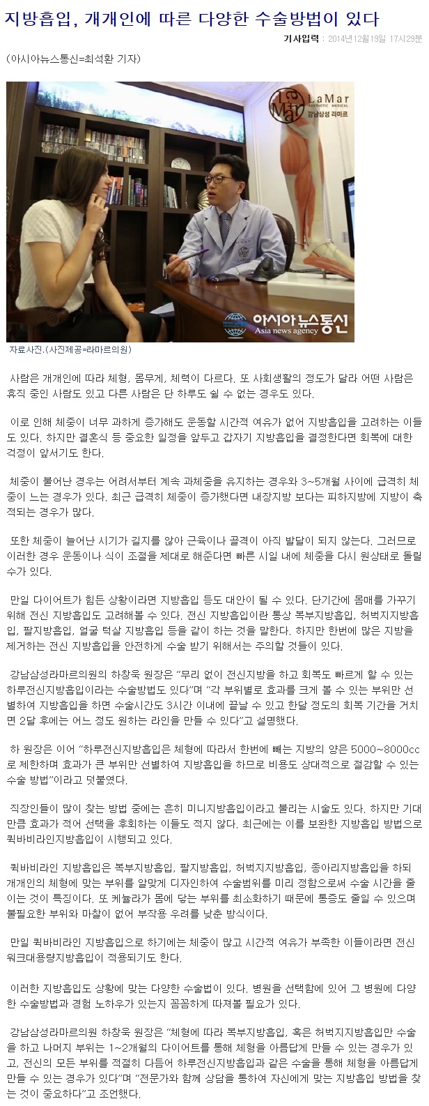 [아시아뉴스통신] 지방흡입, 개개인에 따른 다양한 수술방법이 있다