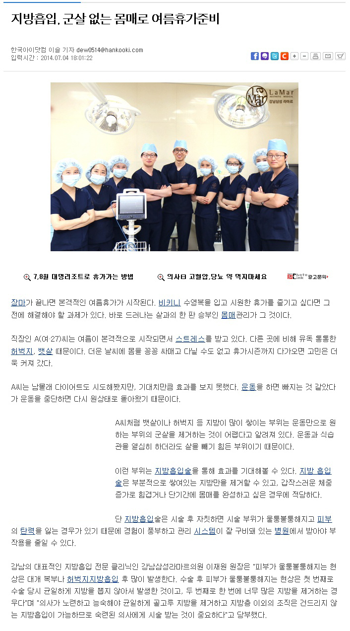 강남삼성라마르 언론보도 : [서울경제] 지방흡입, 군살 없는 몸매로 여름휴가준비