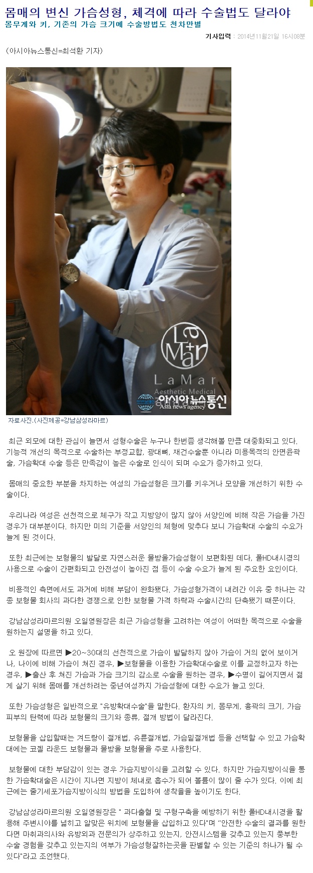 [아시아뉴스통신] 몸매의 변신 가슴성형, 체격에 따라 수술법도 달라야