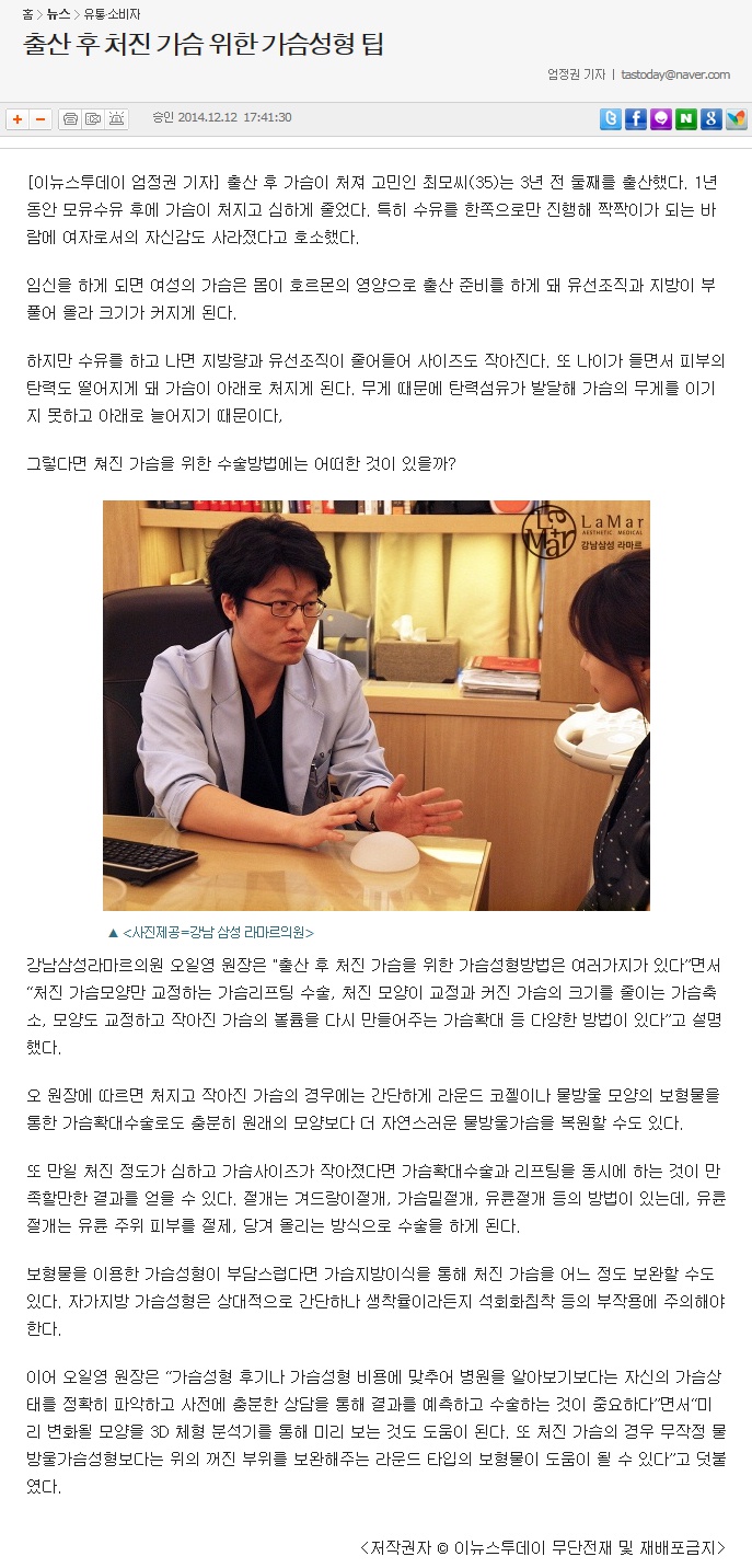 [이뉴스투데이] 출산 후 처진 가슴 위한 가슴성형 팁