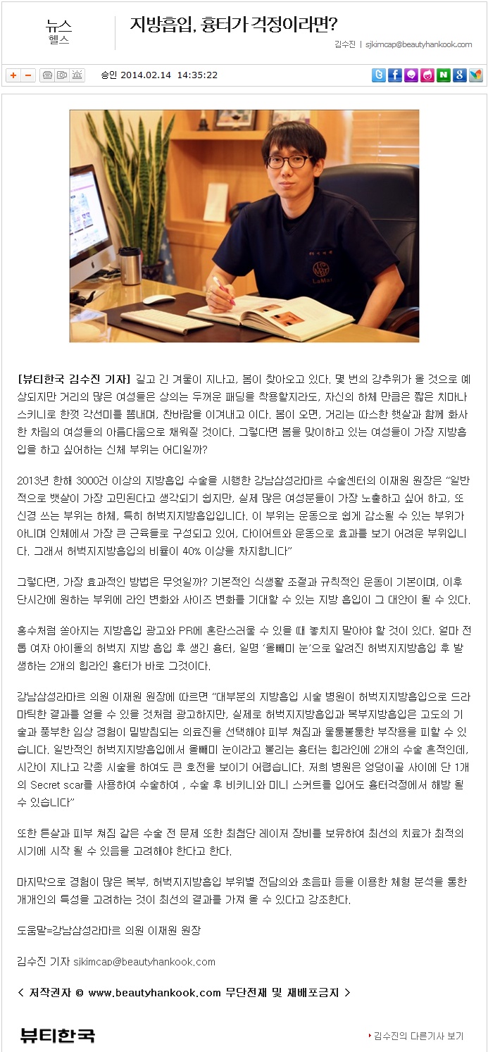 [한국일보] 지방흡입, 흉터가 걱정이라면?