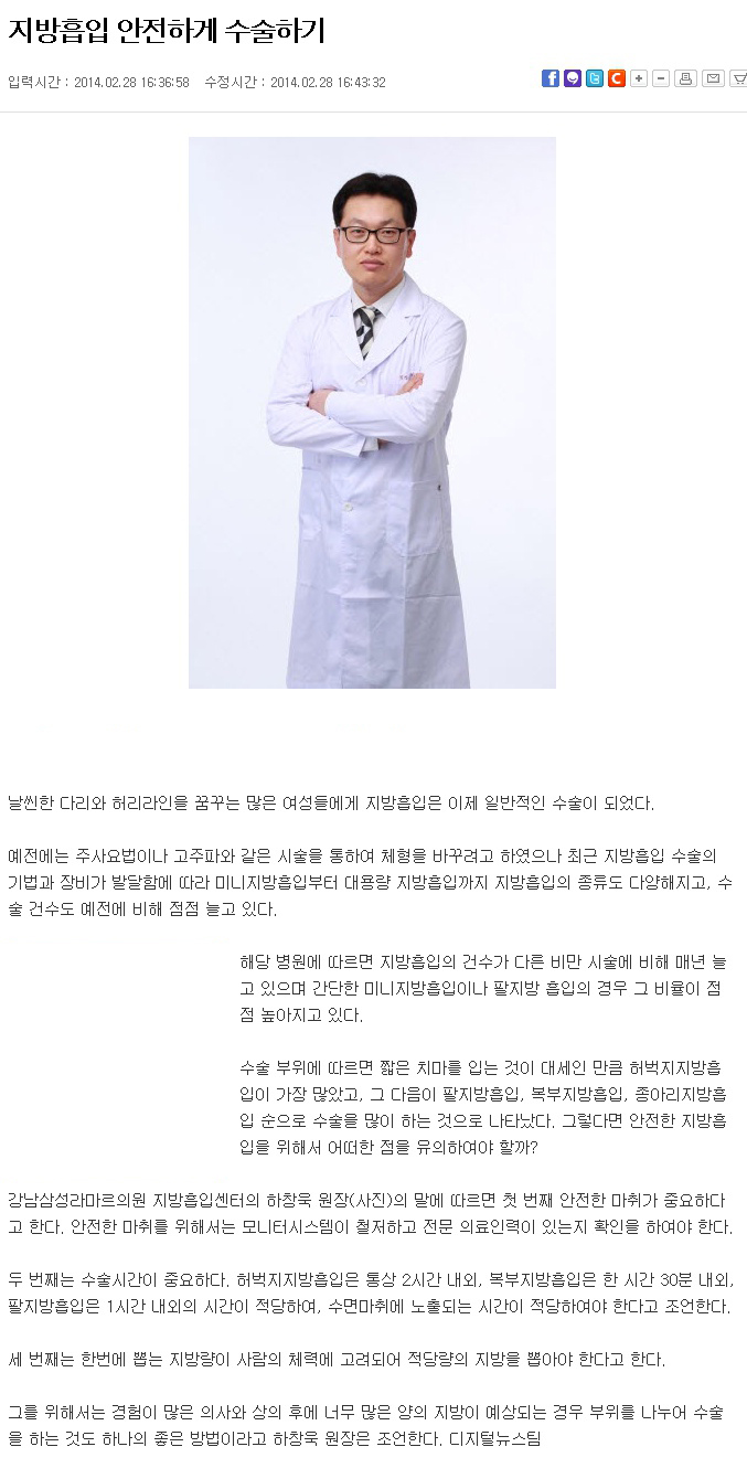 [스포츠한국] 지방흡입 안전하게 수술하기 자세히 보기 : http://sports.hankooki.com/lpage/entv/201402/sp2014022816365794690.htm