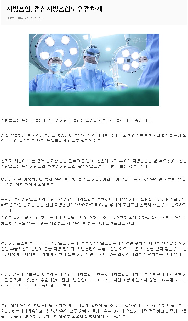 [m이코노미] 지방흡입, 전신지방흡입도 안전하게