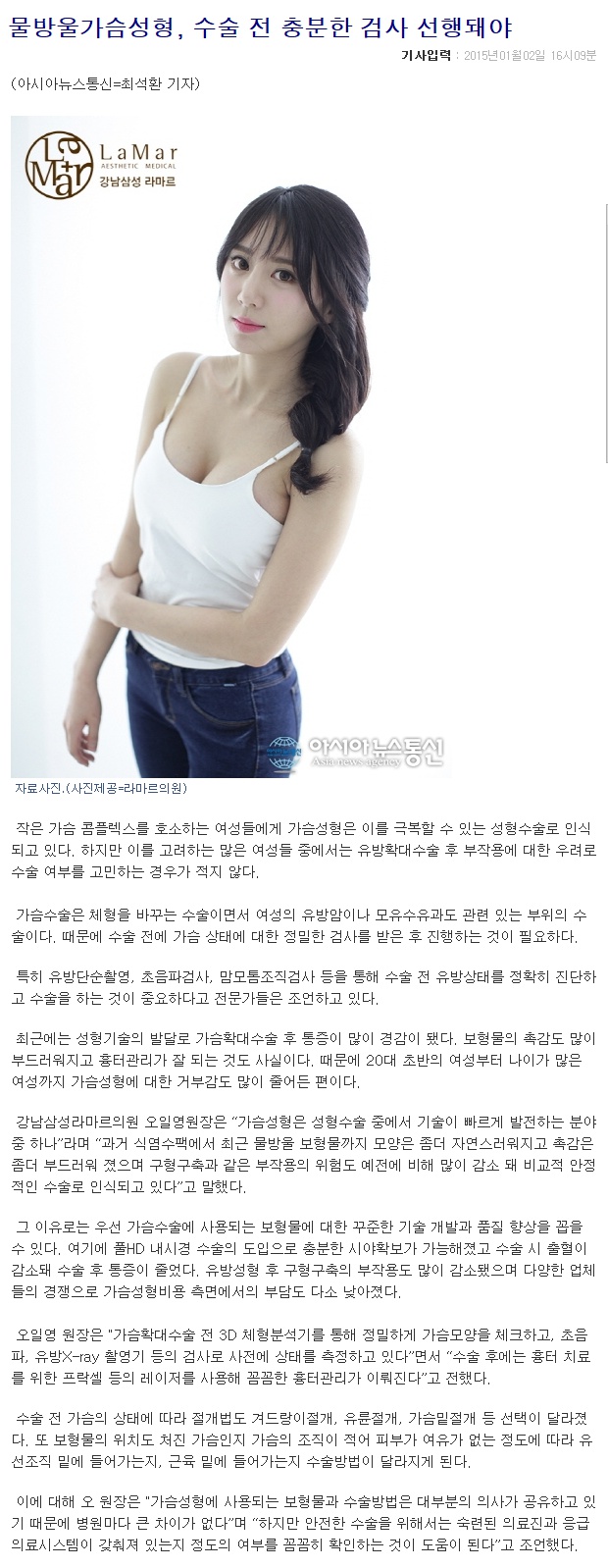 [아시아뉴스통신] 물방울가슴성형, 수술 전 충분한 검사 선행돼야