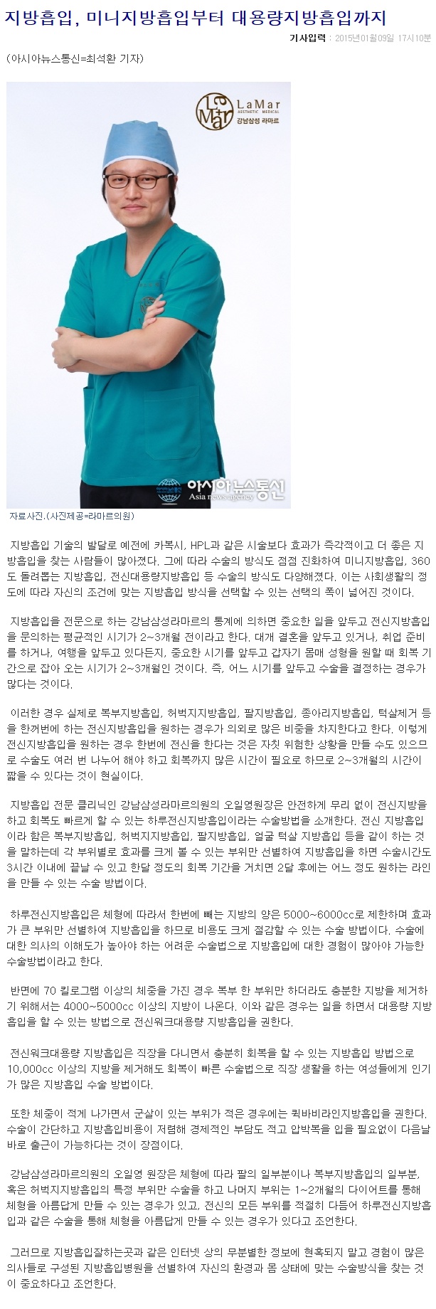 [아시아뉴스통신] 지방흡입, 미니지방흡입부터 대용량지방흡입까지