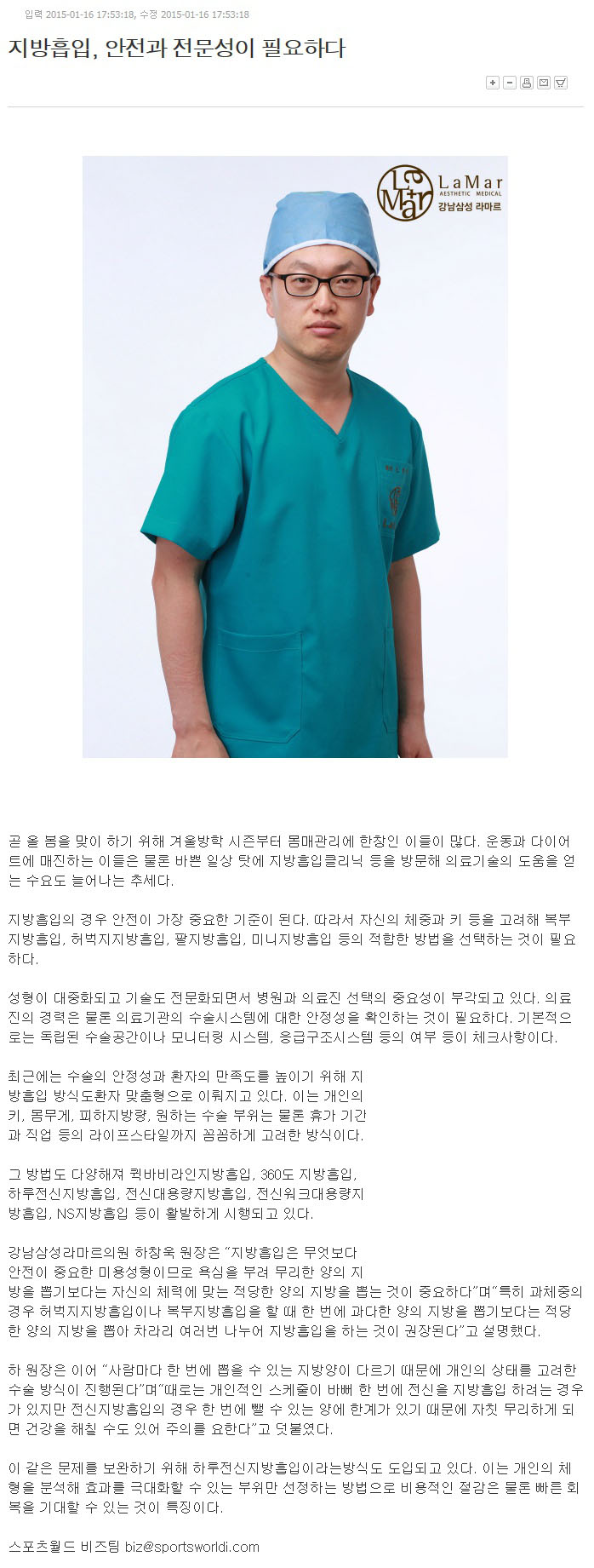 [스포츠월드] 지방흡입, 안전과 전문성이 필요하다