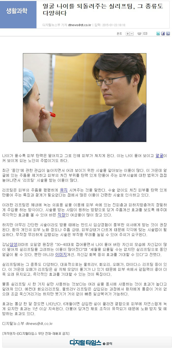 [디지털타임스] 얼굴 나이를 되돌려주는 실리프팅, 그 종류도 다양하다