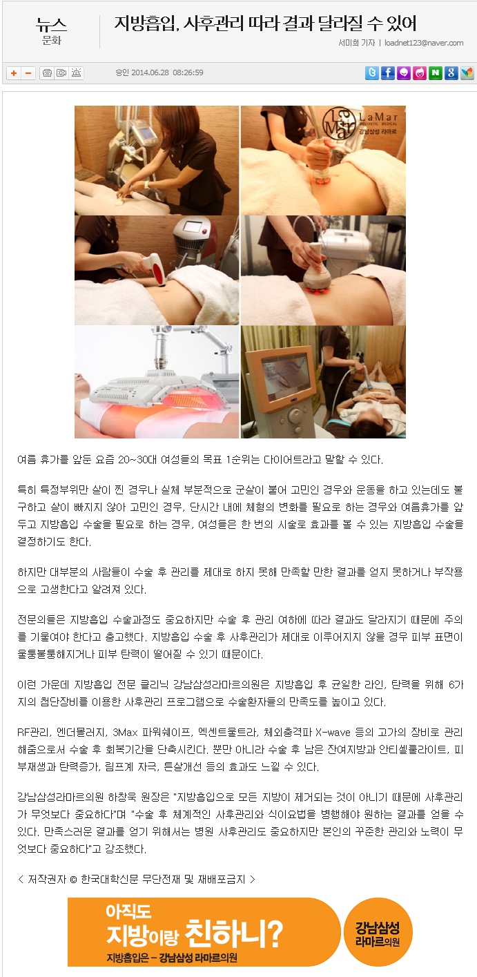 [한국대학신문] 지방흡입, 사후관리 따라 결과 달라질 수 있어
