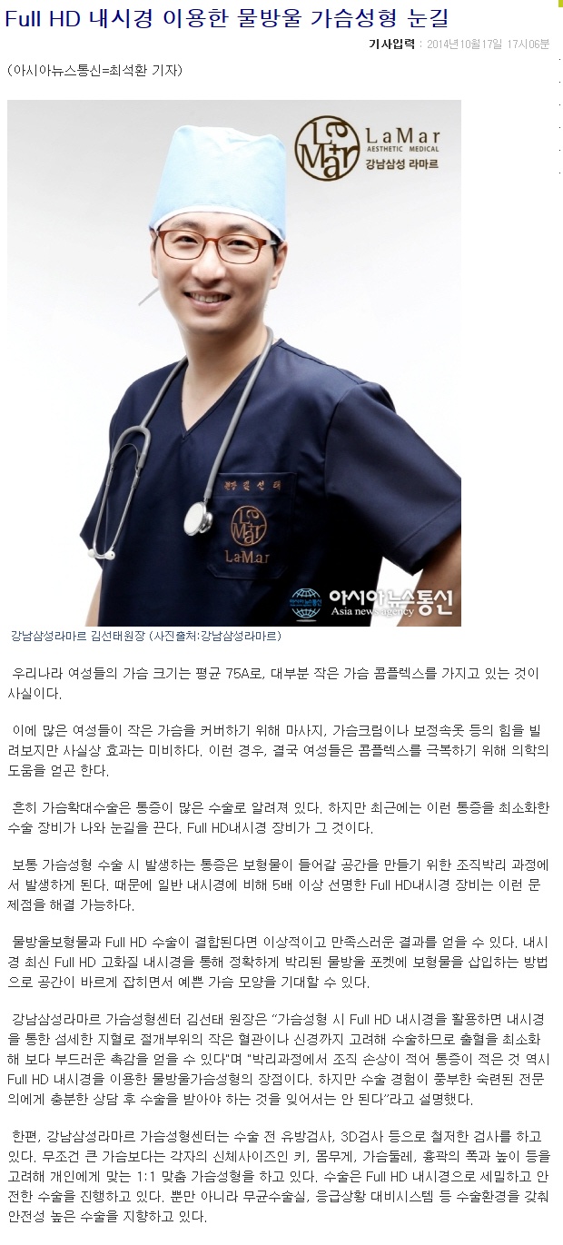 [공지] [아시아뉴스통신] Full HD 내시경 이용한 물방울 가슴성형 눈길